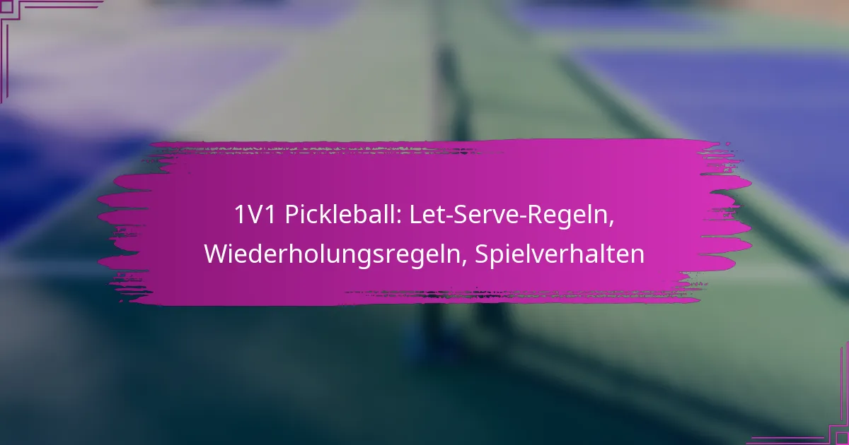 Im 1v1-Pickleball ist es entscheidend, die Regeln für den Let-Service, die Wiederholungsregeln und das erwartete Spielverhalten zu verstehen, um ein reibungsloses und angenehmes Match zu gewährleisten. Ein Let-Service ermöglicht eine Wiederholung ohne Strafe, wenn der Ball das Netz berührt, aber im richtigen Aufschlagbereich landet. Darüber hinaus helfen die Wiederholungsregeln, Fairness zu wahren, indem sie es ermöglichen, Punkte unter bestimmten Bedingungen neu zu starten, während das richtige Spielverhalten Sportsgeist und effektive Kommunikation zwischen den Spielern betont.