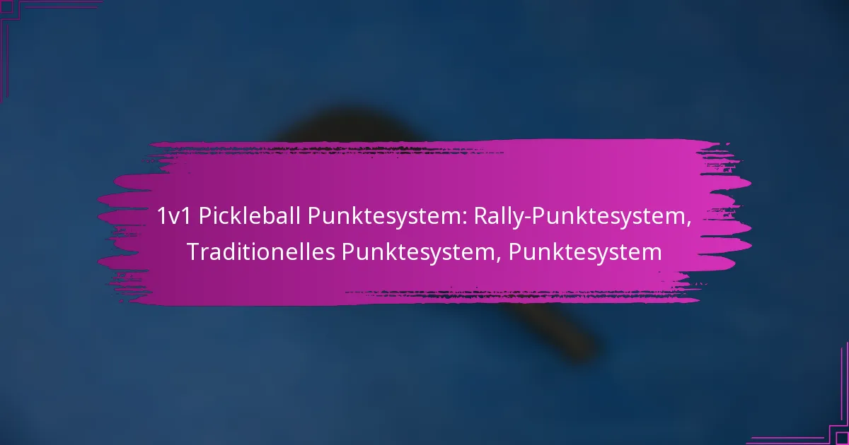 1v1 Pickleball-Punktevergabe umfasst verschiedene Methoden zur Verfolgung von Punkten während Einzelspielen, was für die Spieler entscheidend ist, um effektive Strategien zu entwickeln und ihre Freude am Spiel zu steigern. Die beiden primären Punktesysteme sind Rally-Punktevergabe, bei der beide Spieler bei jedem Aufschlag punkten können, und traditionelle Punktevergabe, bei der nur der aufschlagende Spieler Punkte erzielen kann. Das Verständnis dieser Systeme hilft den Spielern, ihr Spiel anzupassen und ihren Wettbewerbsvorteil zu maximieren.